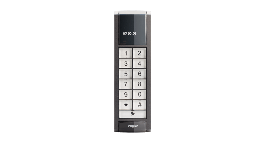 EM 125 kHz indoor proximity reader, bolted contacts, plastic keypad with backlight, Bell function key.