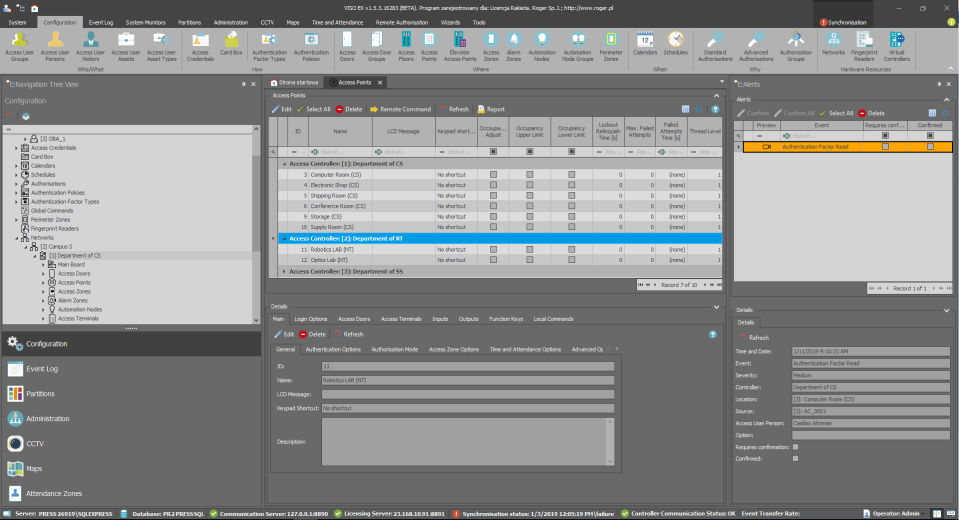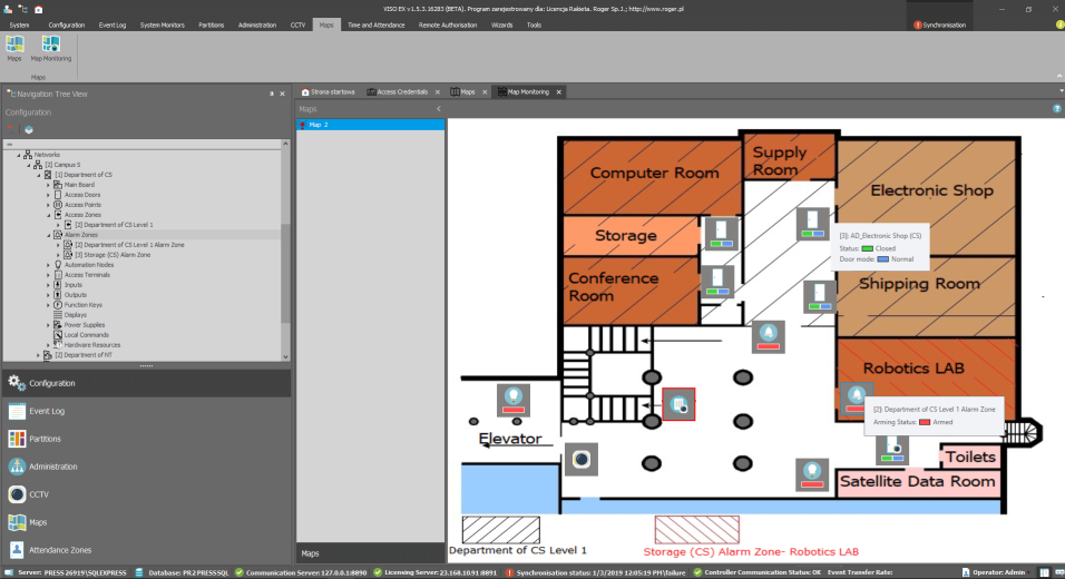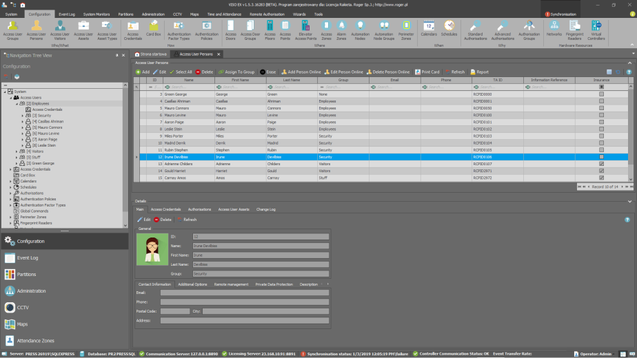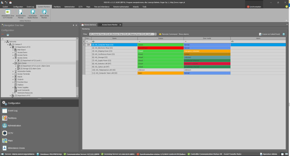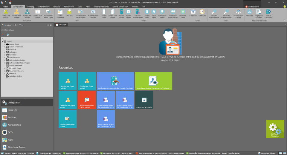 The standard version (RACS 5 ST) managed by VISO ST software offers both typically expected access control features and advanced functionalities beyond the popular access control. RACS 5 ST is dedicated to medium and big installations, also distributed ones, where subsystems are connected to a central system in a wide area network (WAN). VISO ST is offered free of charge in the starter version and can support up to 16 doors and 500 users.