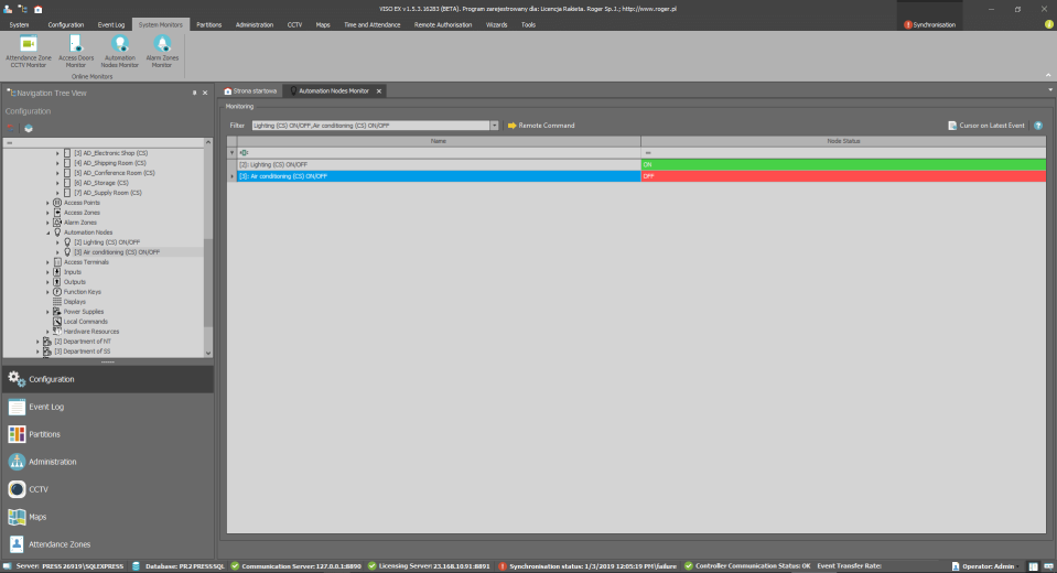 RACS 5 software is modular and it includes such programs as license server, communication server and integration server which is used for communication with third party software. VISO application is not necessary for current operation of the system and can be started only when needed. VISO can be operated on multiple displays and it enables configuration of tiles for frequent tasks.