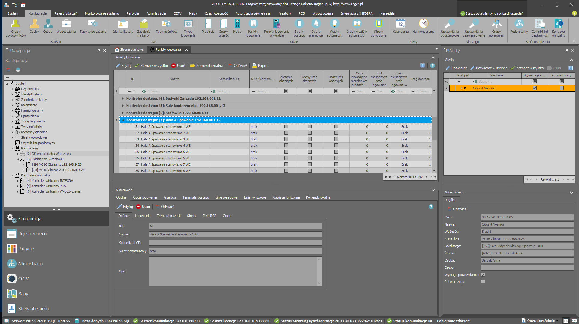 - sygnalizacja alertów na konsoli operatora